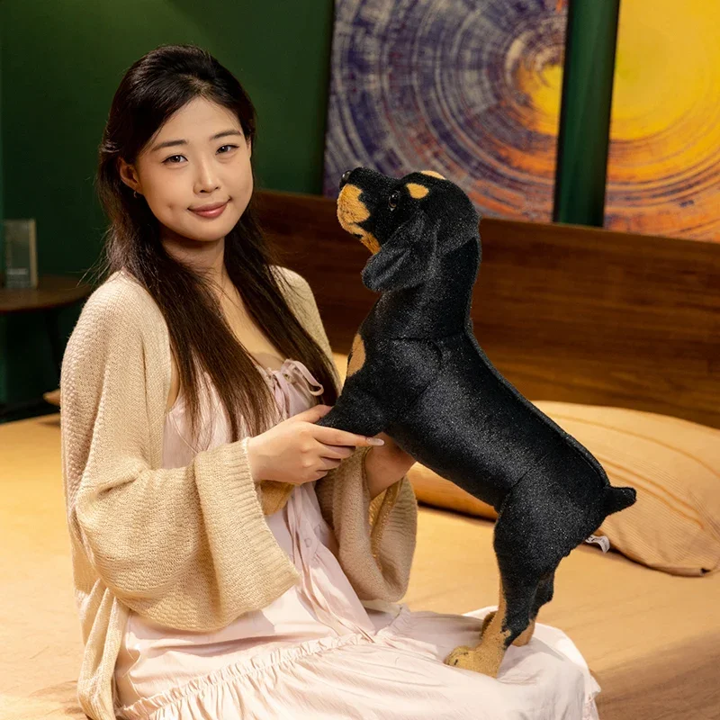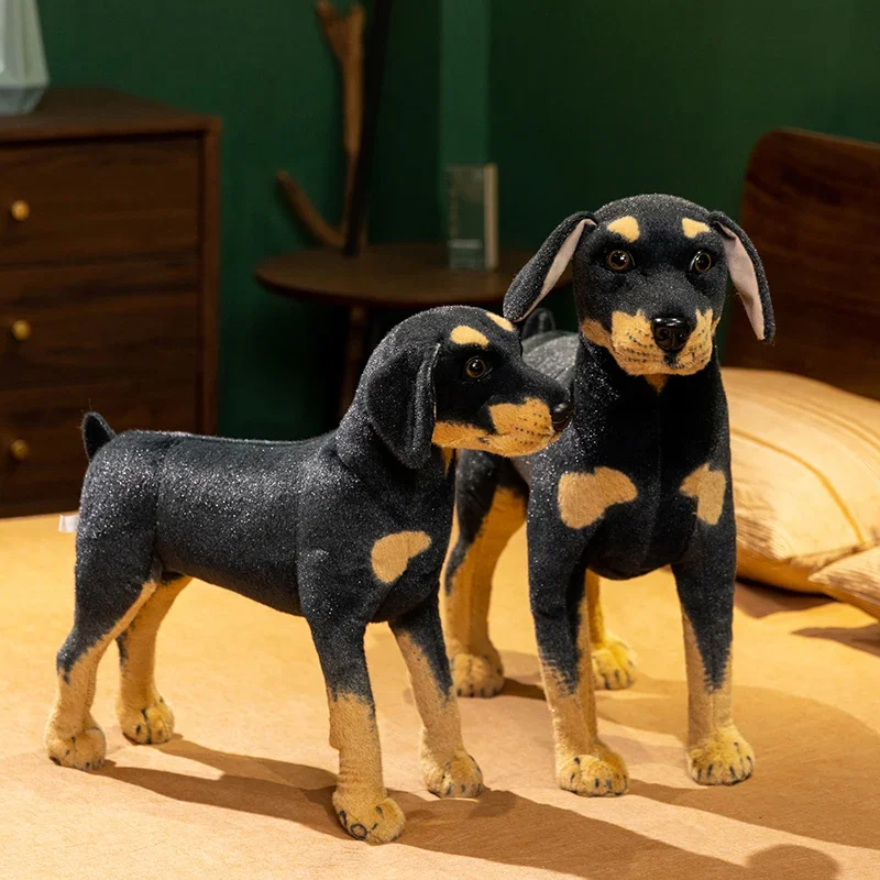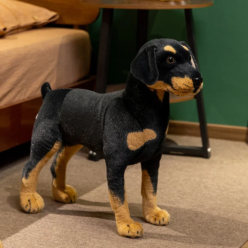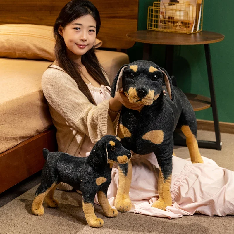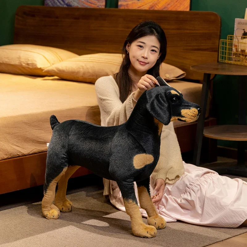Realistic Rottweiler Plush Toy Big Size Lifelike Black Dog Soft Doll Stuffed Animal Fluffy Puppy Kid Adults Gift for Dog Lovers