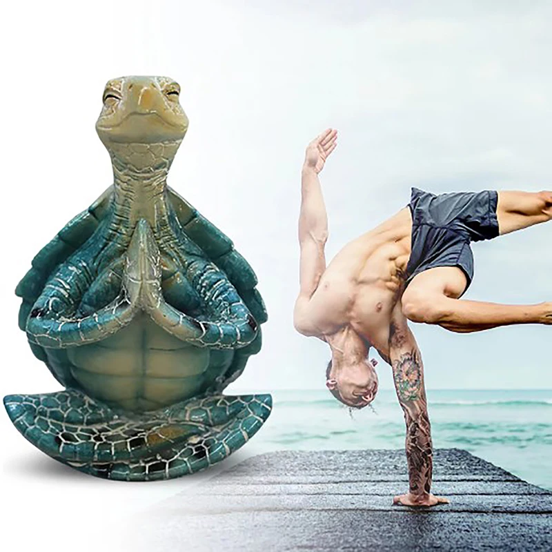 Sea Turtle Figurine Meditating Turtle Statue Zen Yoga Tortoise Miniature Sculpture Sea Turtle Resin Ornament Home Garden Decor